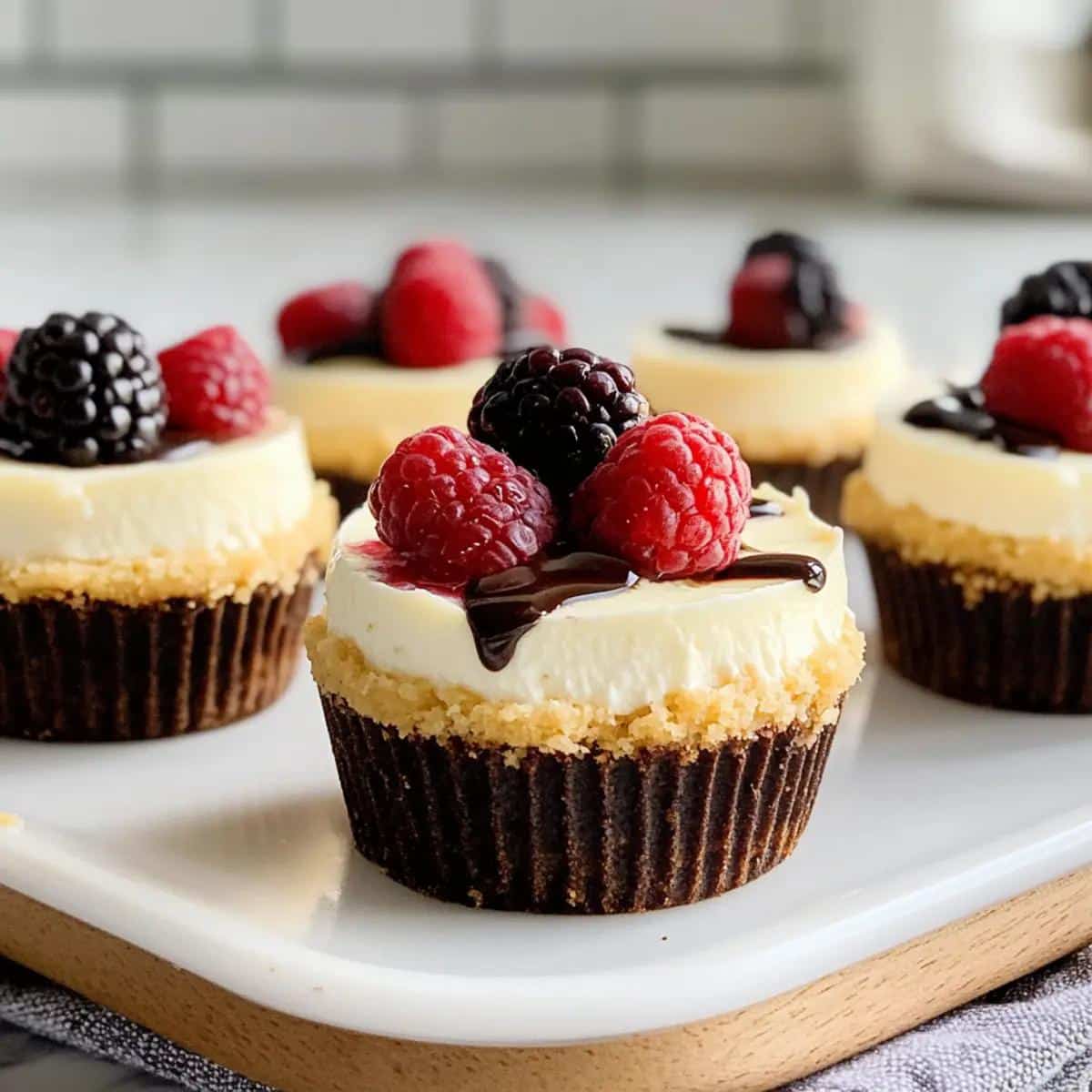 Deliciosos mini pasteles de queso con una base crujiente de galleta, perfectos para cualquier ocasión y fáciles de personalizar con tus toppings favoritos.