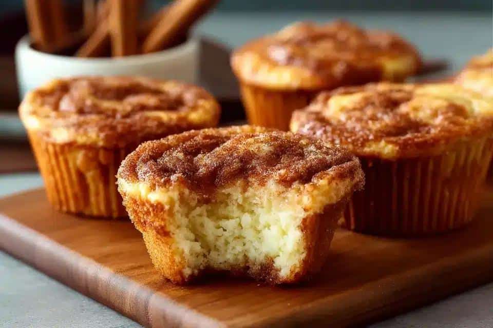 Estos muffins de cheesecake y canela son la mezcla perfecta entre un muffin esponjoso y un relleno cremoso. El aroma cálido de la canela los hace ideales para días frescos o momentos especiales.